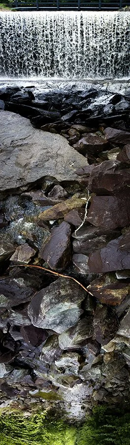 Linville Spillway, 2021, digital collage/archival pigment print, 80” x 23.4”
